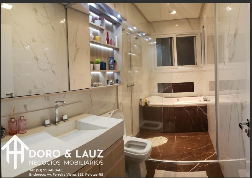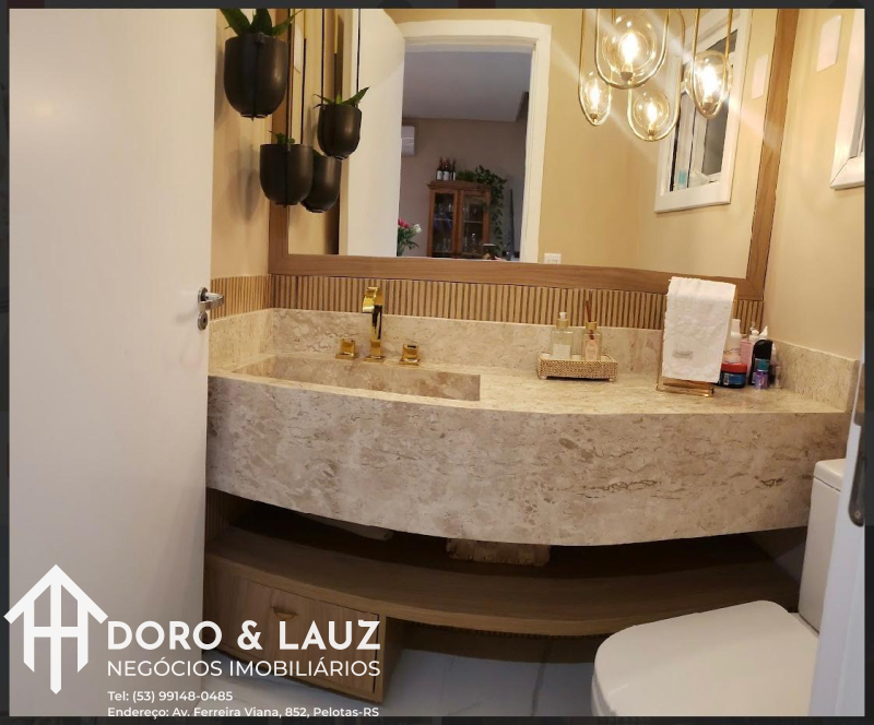 esculpida em mármore travertino + móveis planejados; - Sacada em L ,