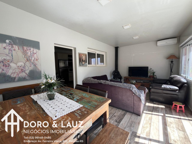Sala ampla com lareira, cozinha com móveis planejados, banheiro social, adega, despensa, lavanderia, e no pátio temos um sobrado com acomodação para mais pessoas.